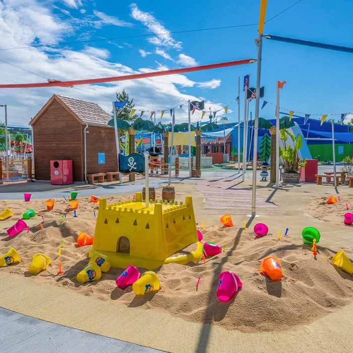 Land in sight! Dig deep in the soft sand and build your favourite sandcastles in Grandad Dog’s sand playground.