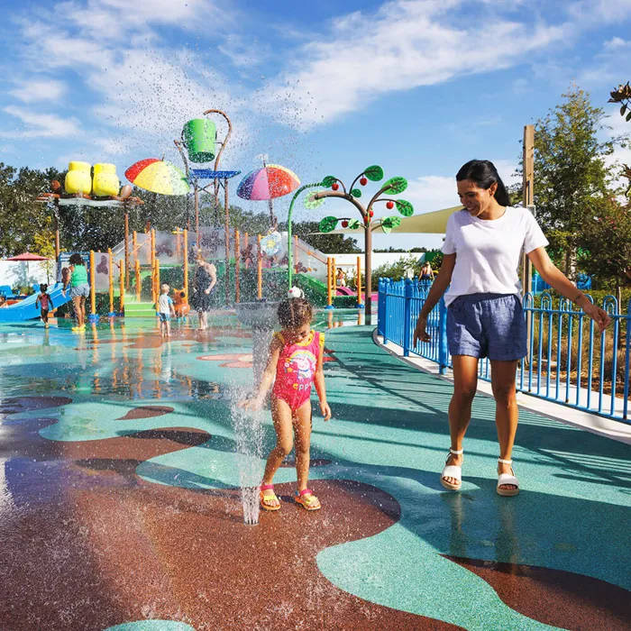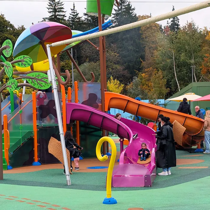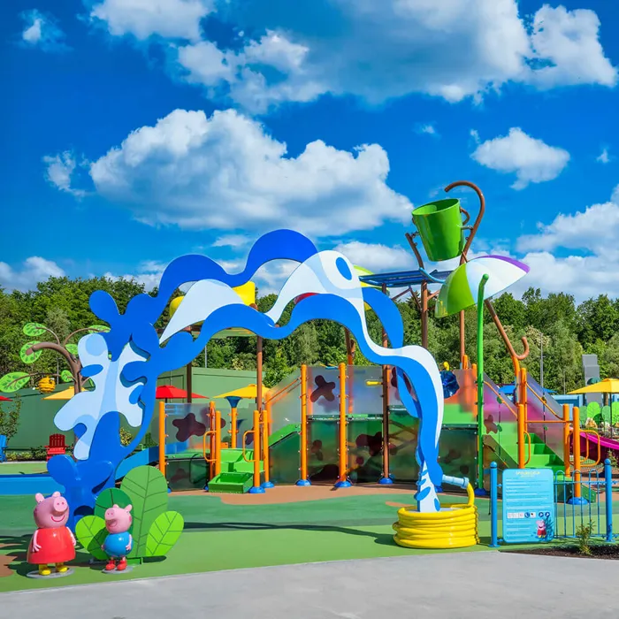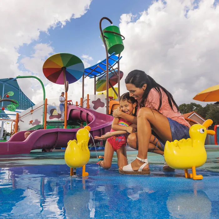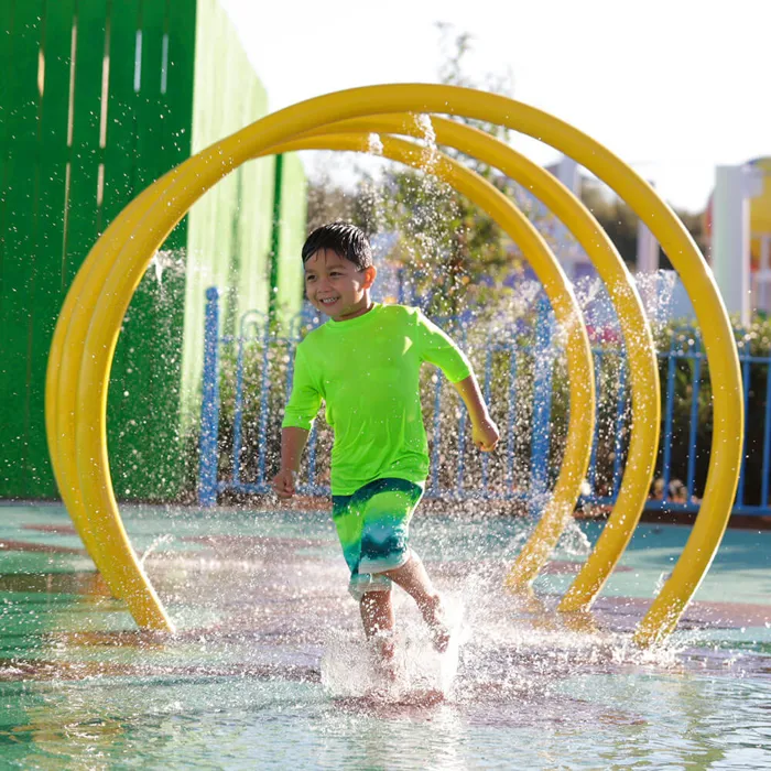 Then let's go to the exciting water playground! Splashing around has never been so much fun as when jumping through water fountains, sliding in the cool water and playing surprising water games.