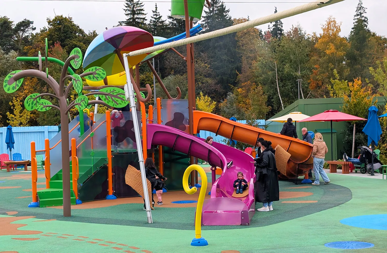 Then let's go to the exciting water playground! Splashing around has never been so much fun as when jumping through water fountains, sliding in the cool water and playing surprising water games.