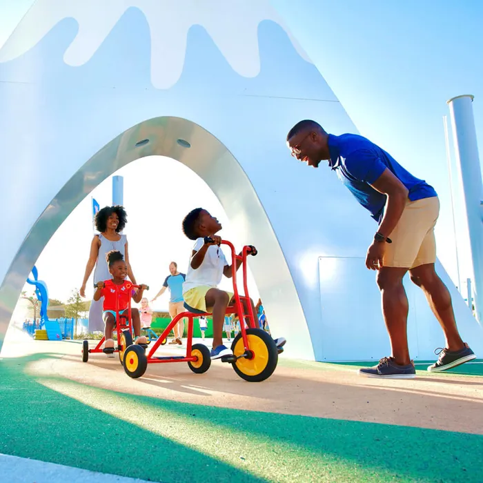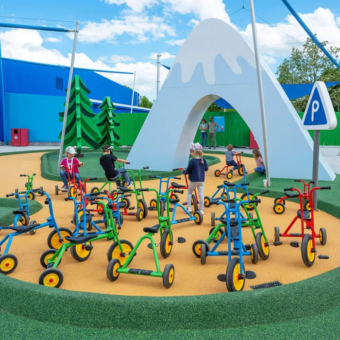 Smaller cyclists can enjoy George's shorter pedal path adventure on tricycles built just for them!